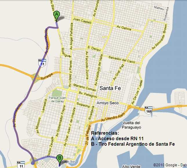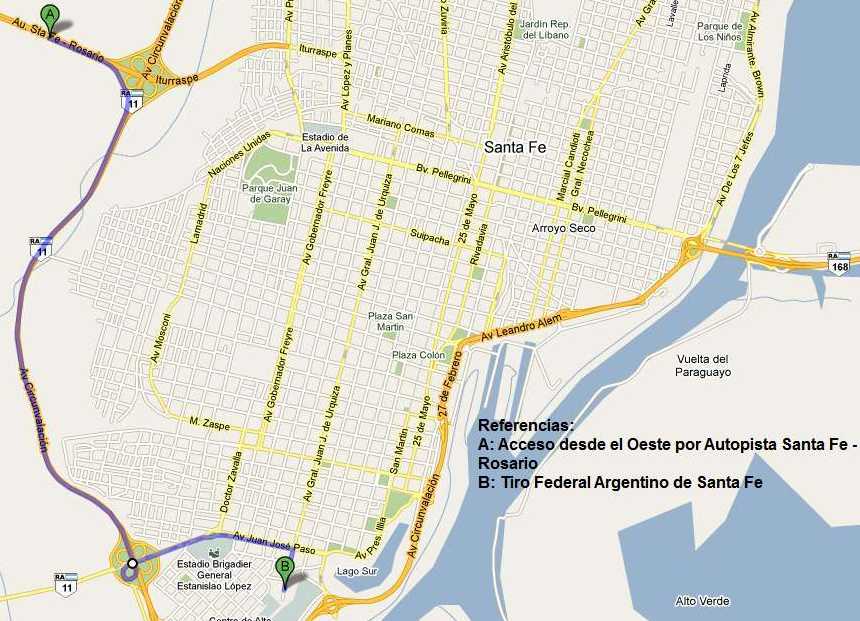 Desde el Este por RN 168 (desde Entre Rios) y la Costa por RP 1